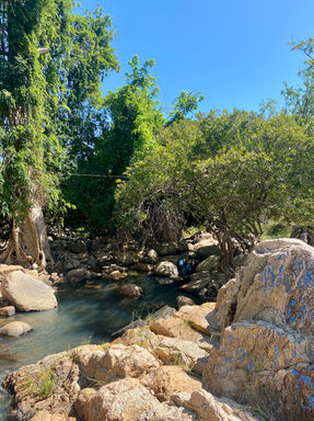 Close to beautiful Vinh Hy Bay there is something special hidden in the mountains. We found this place after driving up to a little village, crossing a hanging bridge, wading through a small river and walking up a hill.